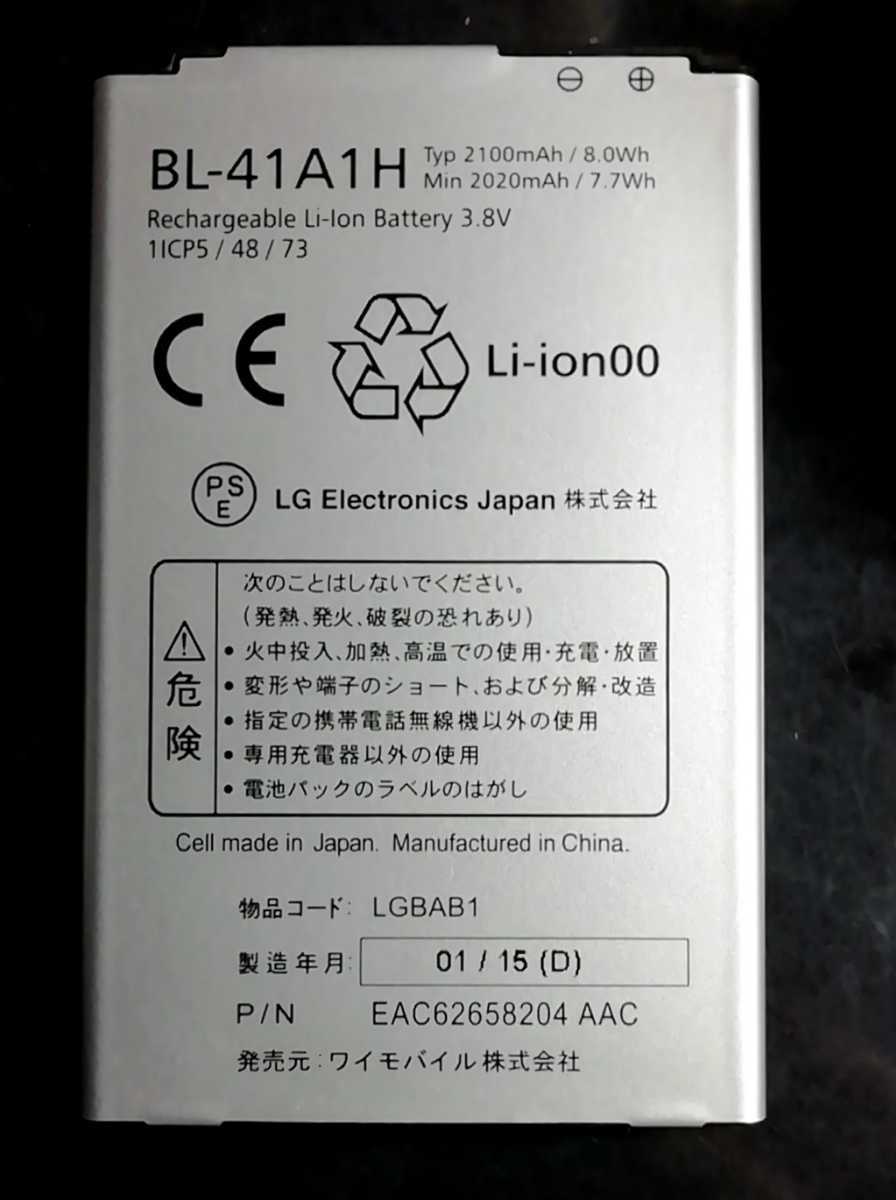 - 【中古・残り1個】ワイモバイルLGBAB1純正電池パックバッテリーBL-41A1H【充電確認済】対応機種(参考)402LG
