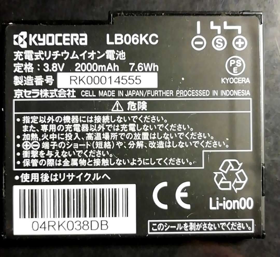 - 【中古】ワイモバイルLB06KC純正電池パックバッテリー【充電確認済】対応機種(参考)DUAL 2 WX10K