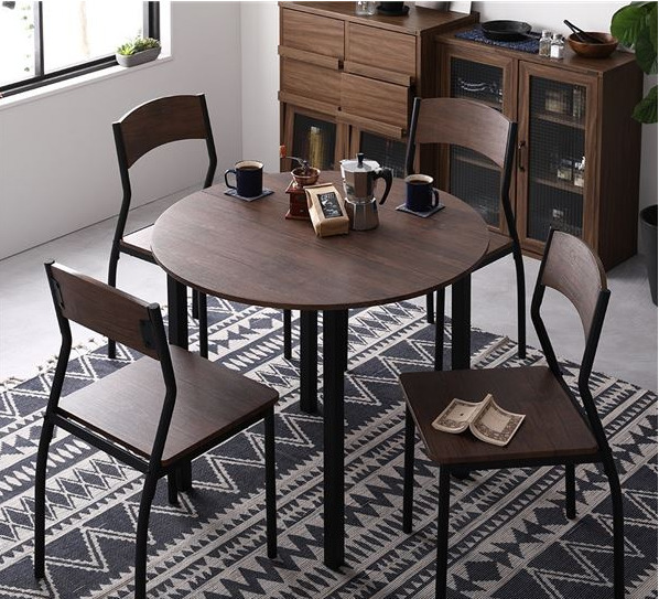- ダイニング セット 円形 テーブル 90cm チェア 4脚 ブラウン ブラック モダン シンプル ヴィンテージ 4人掛け