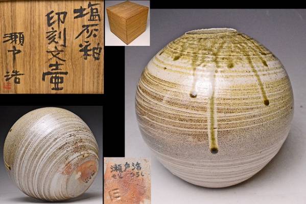- 瀬戸浩 ★ 塩灰釉印刻紋壺 ★ 共箱 ★ 物故作家 希少 作 ★ 検 加守田章二