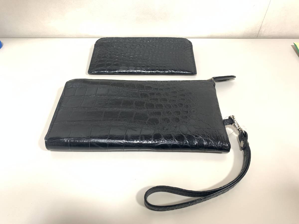 - 【質屋 尾張屋商店 東京】☆美品☆ クロコダイル 本物 小財布付トラベルウォレット 黒
