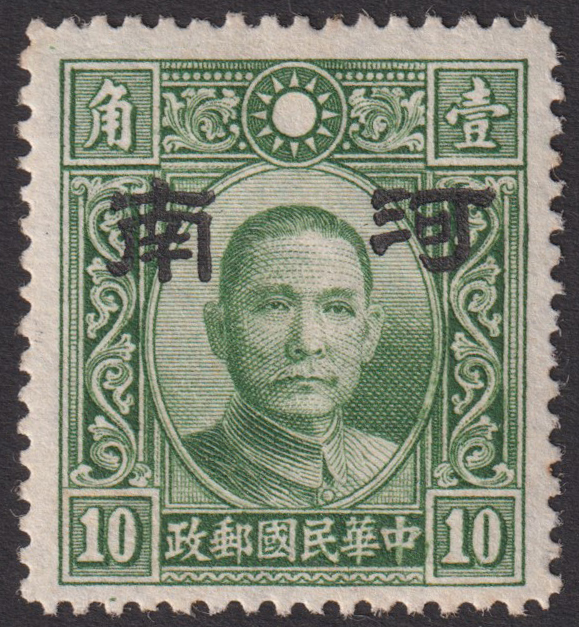 - 中国占領地切手 河南 省名加刷 大字 非正式発行 大東版孫文票 すかしあり 10分 未使用 NH JPS:2C70 0566