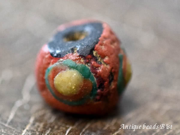 - ●わくわく とんぼ玉★超得割! 古代ローマン突起状4眼貼付赤茶玉C5 トンボ玉 アンティークビーズ【送料無料】【AB14021C-5】