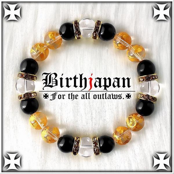 - 10mm/ロンデル×オニキス/水晶/金龍水晶数珠ブレスレット/ヤクザ