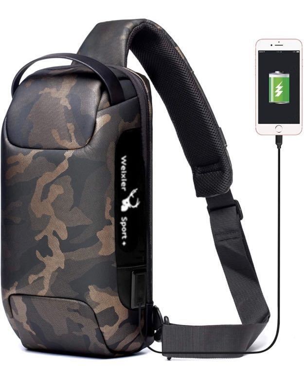 - ワンショルダーバッグ ボディバッグ USBポート 付き防水 ショルダーバッグ 軽量 大容量 かっこいいバッグ メッシュ 斜めかけ 迷彩