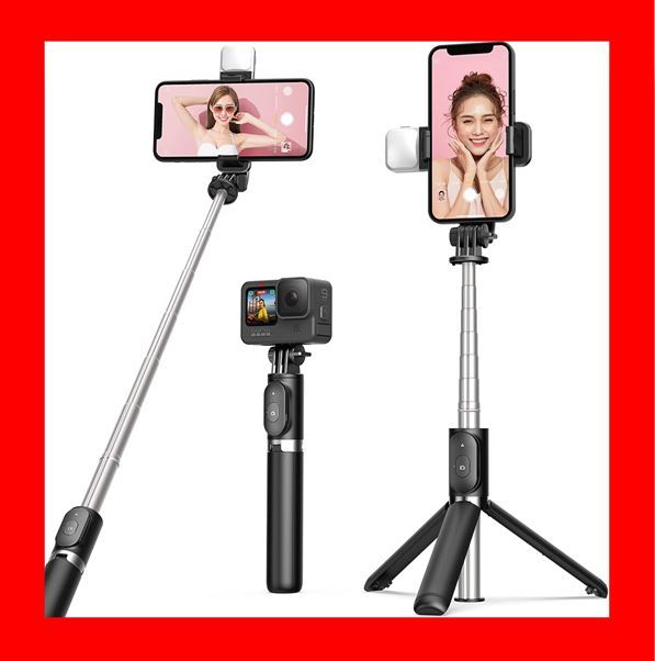 - 【新登場】ライト付き自撮り棒三脚|360°回転・Bluetoothリモコン・9段階調光!
