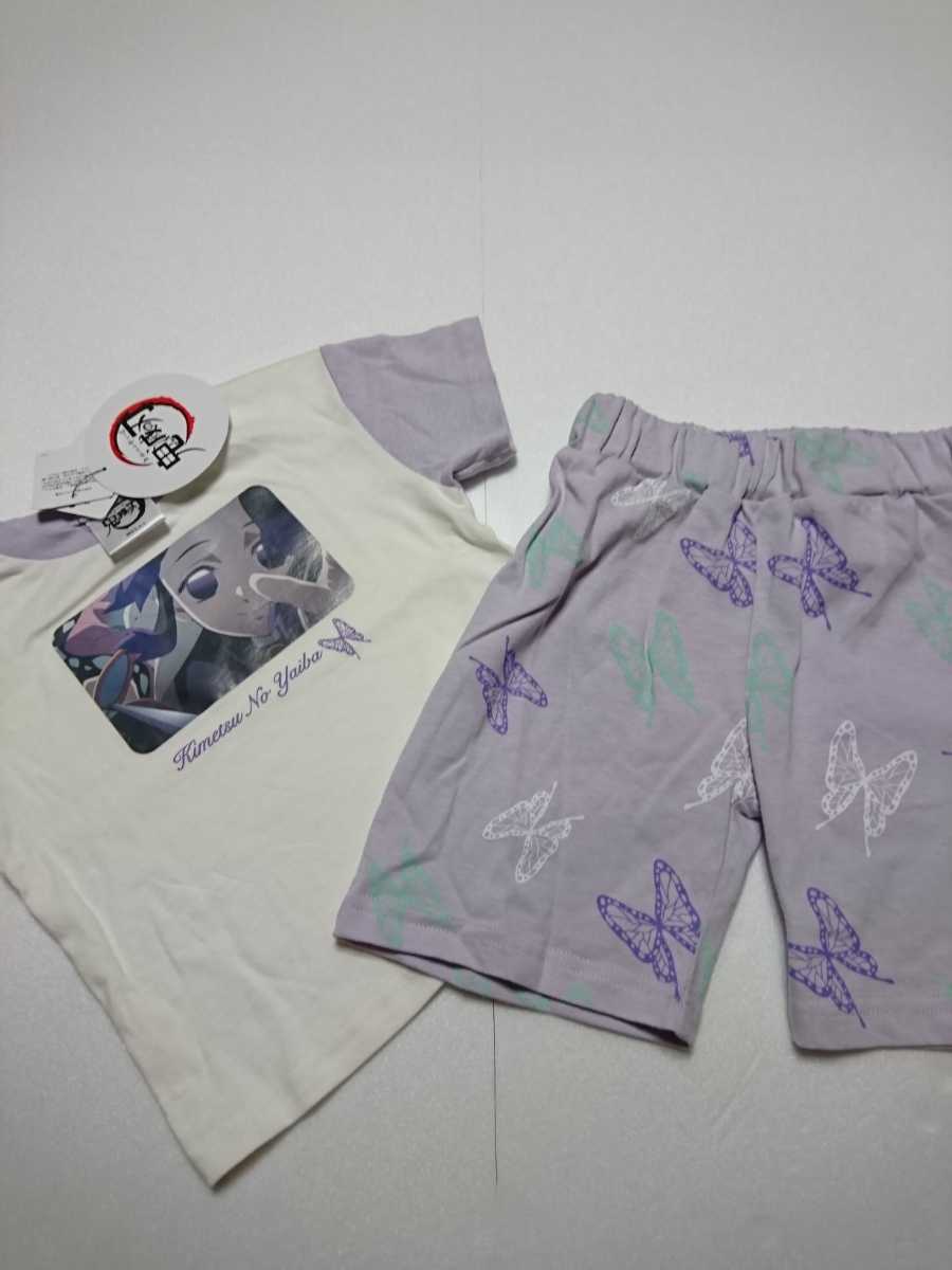 > 新品 未使用 鬼滅の刃 胡蝶しのぶ 90 なりきり 半袖 ハーフパンツ 上下 ルームウェア パジャマ 部屋着 コットン パジャマ セットアップ