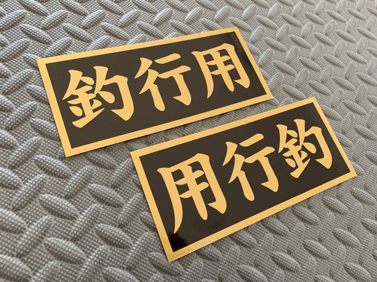 - 送料無料【釣行用】2枚セット 黒/金文字 楷書体 キャンプ アウトドア 釣り 渓流 ブラックバス ジムニー