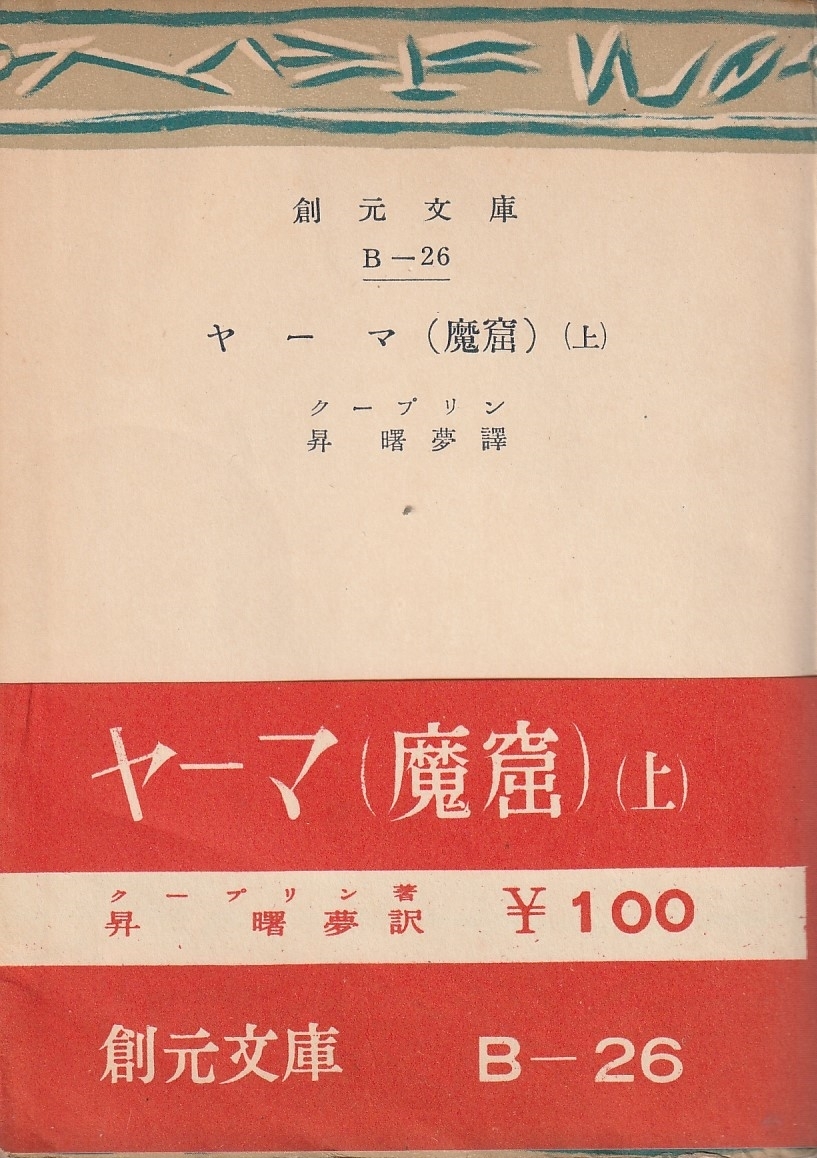 - クープリン ヤーマ(魔窟) 上巻 昇曙夢訳 創元文庫 創元社 初版