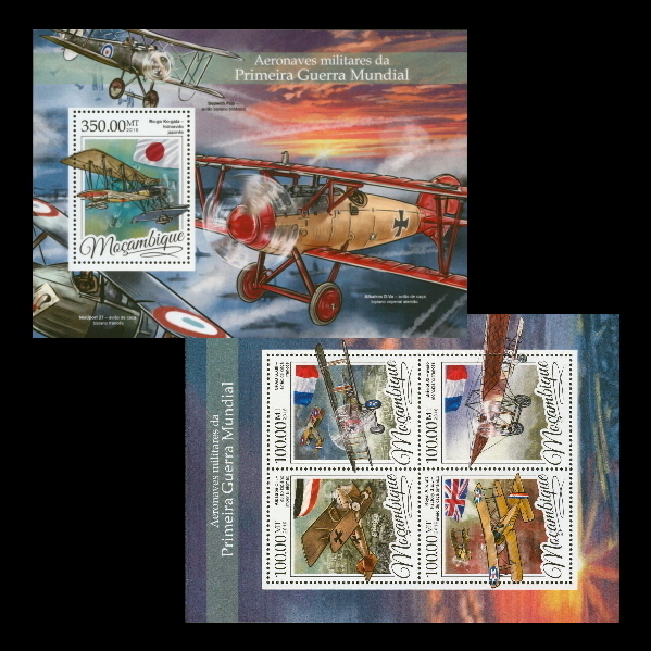 - ■モザンビーク切手 2016年 第一次世界大戦 / 日本空軍 / 横廠式ロ号甲型水上偵察機 他 シート+4種シート