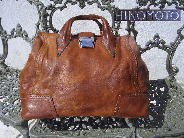 > ●60s 70S MARUEM HINOMOTO DIAMOND 菱形 ダイヤ マルエム 松崎 クール 危ない野郎の男前 キャメル色 革ボストン クールなデザイン ♂珍品
