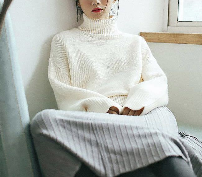 - jemiremi ドロップショルダーハイネックニット ホワイト