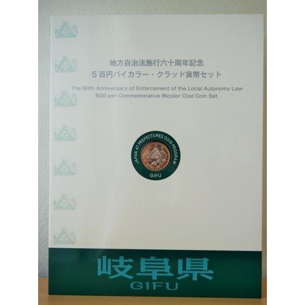 > 874 地方自治法施行六十周年記念 5百円バイカラー・クラッド貨幣セット 岐阜県 記念硬貨 切手付き 日本 造幣局 送料無料