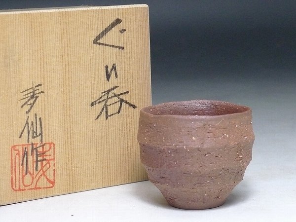 - ▲60SK349▲麦仙造 ぐい呑 酒器 盃 酒杯 共箱付