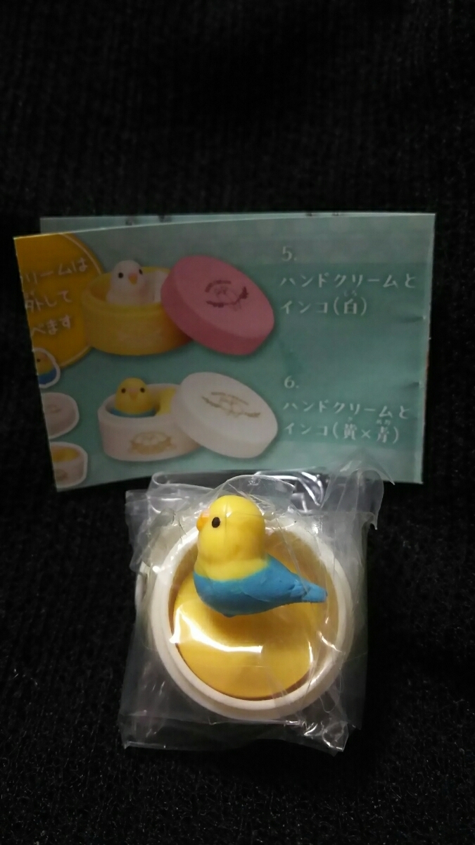 - ハンドクリームとインコ(黄×青) インコと生活 朝のじゅんび編 ガチャガチャ カプセルトイ ☆13+/23☆ 35