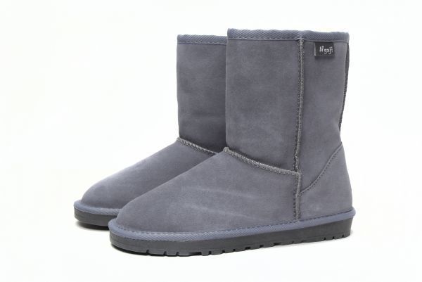 - ムートンブーツ レディース ブーツ 本革 シープスキン ショートブーツ ハイカット 革ブーツ 5825 牛革 羊ファー入り グレー W6 23cm