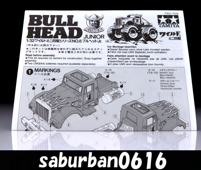 - RC0500 ワイルド ミニ四駆 ブルヘッドJr. 1/32 説明書 タミヤ シリーズNo.8 プラモデル BULL HEAD モンスター トラック トレーラー TAMIYA
