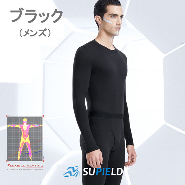 - 超断熱! 宇宙服使用 エアロゲル 断熱素材 防寒 インナーウェア メンズ ブラック Lサイズ Warmmax aerogel 裏起毛 蓄熱 保温 上下セット