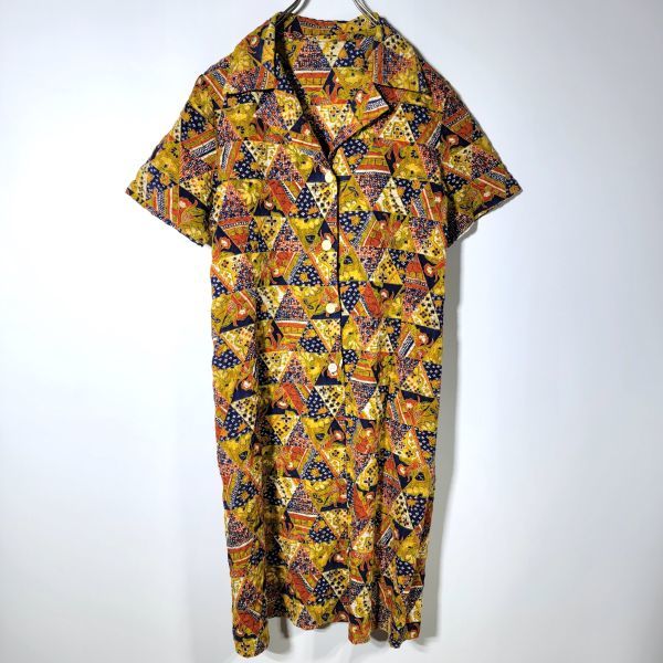 - 昭和レトロ柄 総柄 オープンカラー ワンピース レディース かわいい ハンドメイド