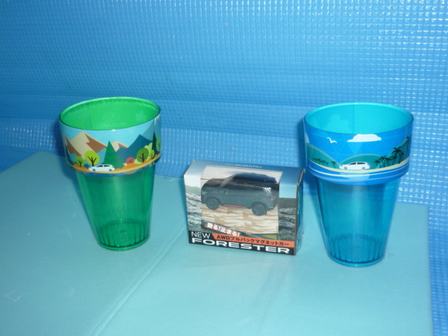 > A★未使用・非売品★スバルフォレスターAWDプルバックマグネットカーとLOGOS×SUBARUスバル コップ 2個set