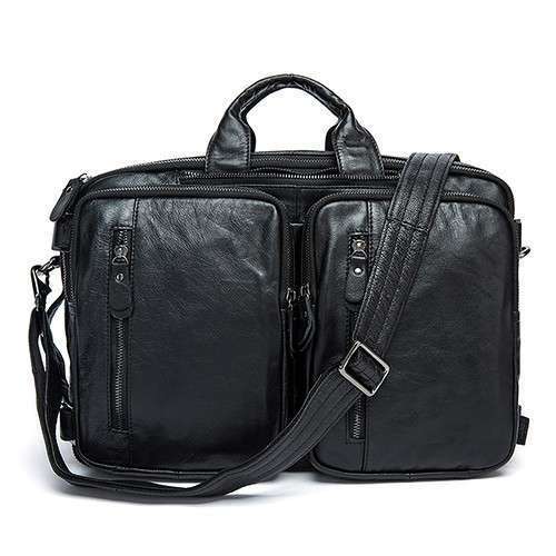 - ビジネスバッグビジネスレザートラベル2wayショルダーラップトップバッグ_black