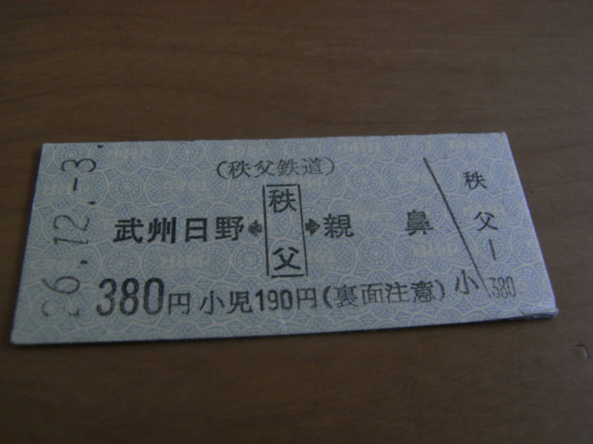 - 秩父鉄道 武州日野←秩父→親鼻 380円 平成26年12月3日 秩父駅発行