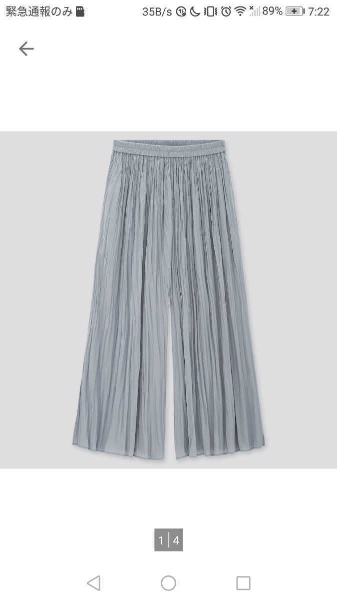 - ユニクロ ワッシャー サテンスカートパンツ ブルー Sサイズ ペチコート付き