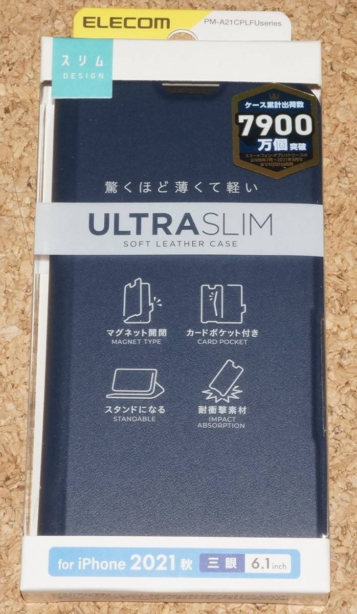 > ★新品★ELECOM iPhone13Pro レザーケース Ultra Slim ネイビー