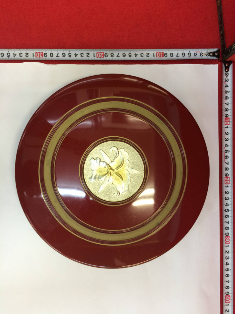 - 昭和レトロ_朱色丸型四方割 器_0237