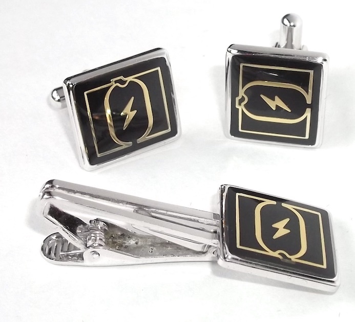 - 昭和 レトロ 社章? ネクタイピン カフスボタン 詳細不明 記章 ノベルティ 検/ 旧章 マーク 電力会社? 電気 電波 通信 ピンズ ビンテージ
