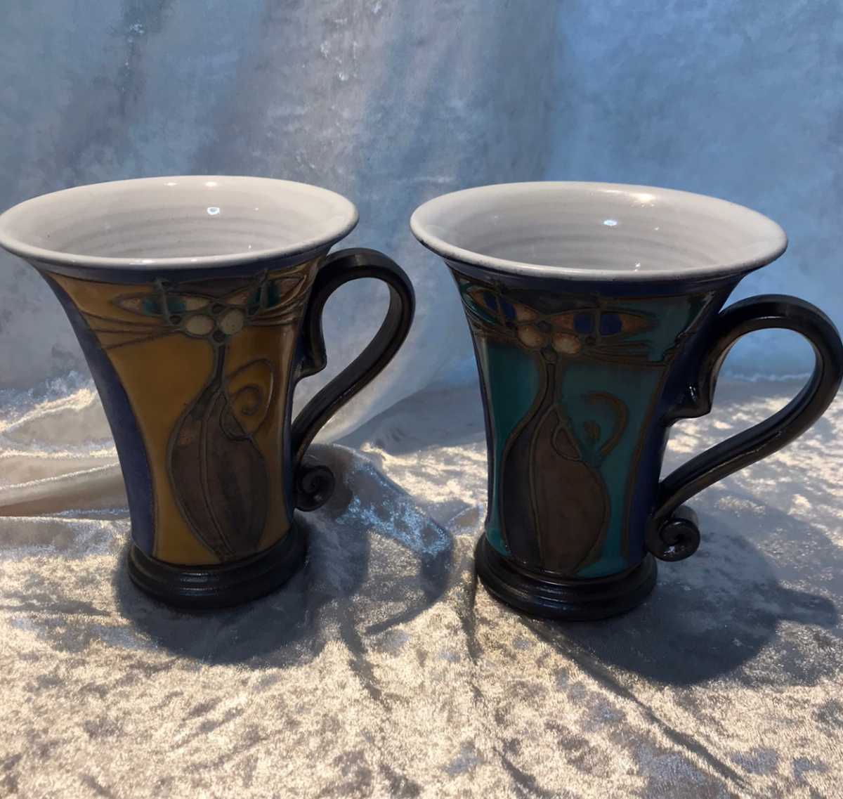 - 【陶磁器】ネコのデザインのマグカップ2個セット ブルガリア ディスプレイ用品 インテリア用品 骨董品 アンティーク