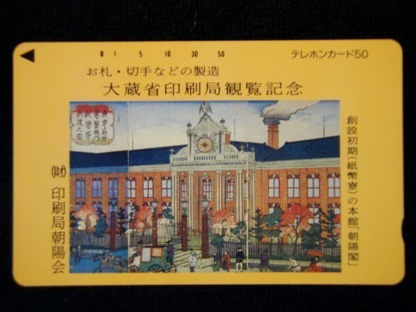- テレカ 50度 錦絵 東京名所常磐橋内紙幣寮新建之図 朝陽閣 未使用