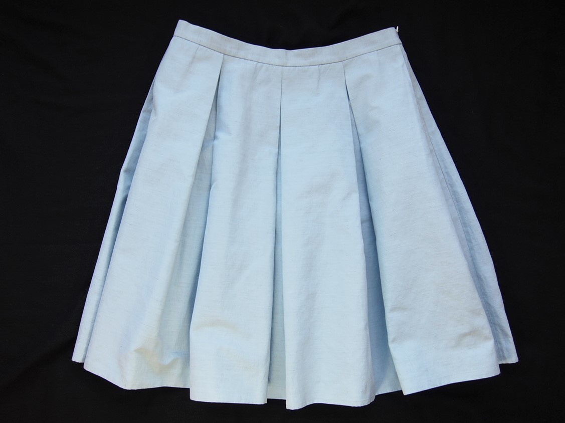 - 定価8万★イタリア製高級生地/EffeBEAMS★BeeQueen★水色タック膝丈スカートChicca Lualdiドゥロワー/リネン混マッセメンシュ