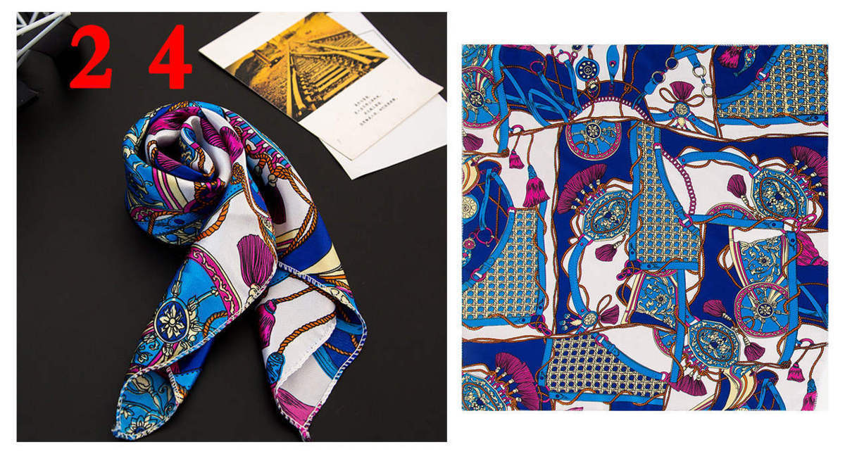 - リボンスカーフ シルク調 パターンスカーフ 6号 ブルー 13272878-24