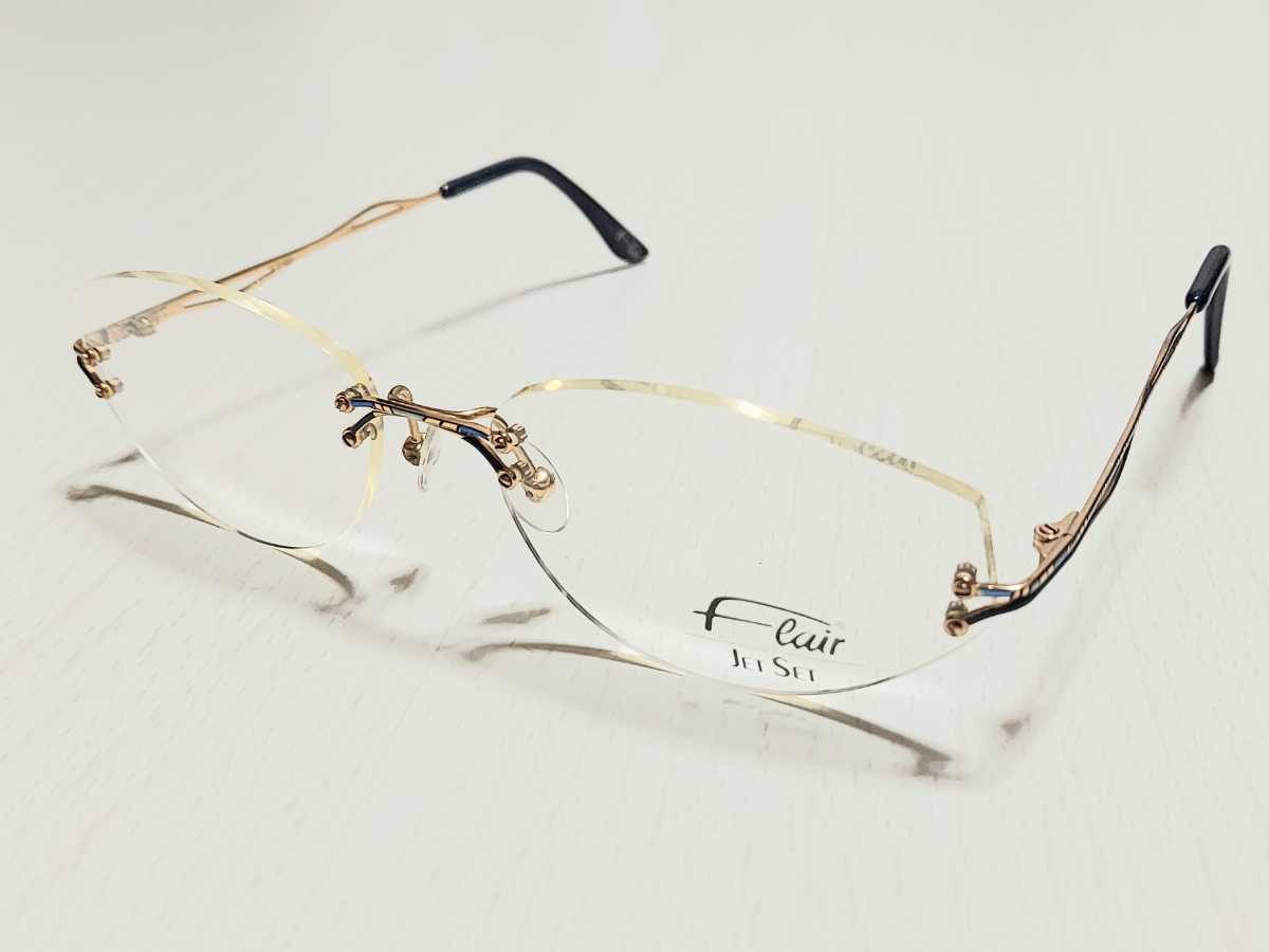 - 新品 Flair フレアー ドイツ製 メガネ 眼鏡 高級感 上品 ツーポイント ブルー 青 綺麗