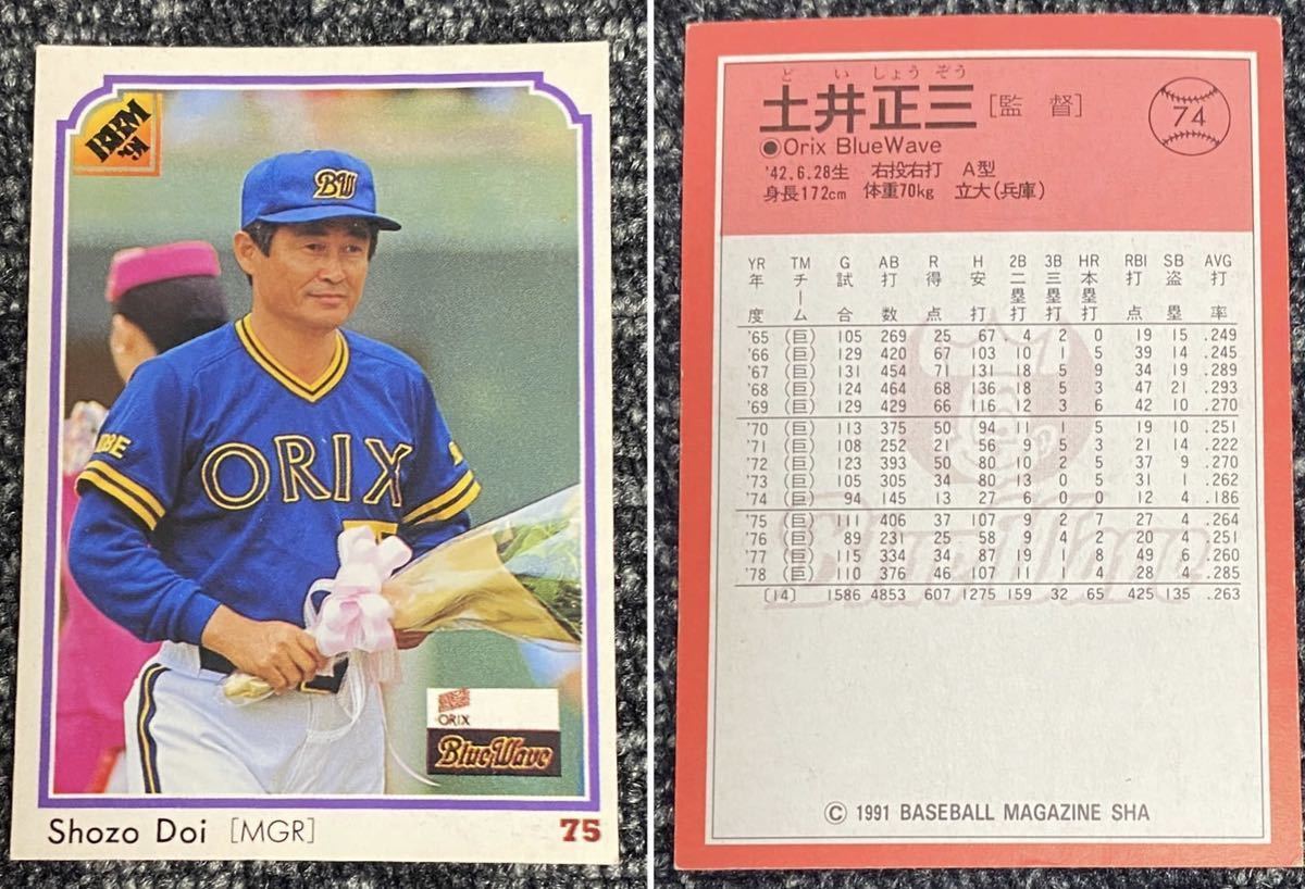 > BBM 1991 土井正三 オリックス ブルーウェーブ レギュラーカード #74 巨人 読売ジャイアンツ バッファローズ 監督