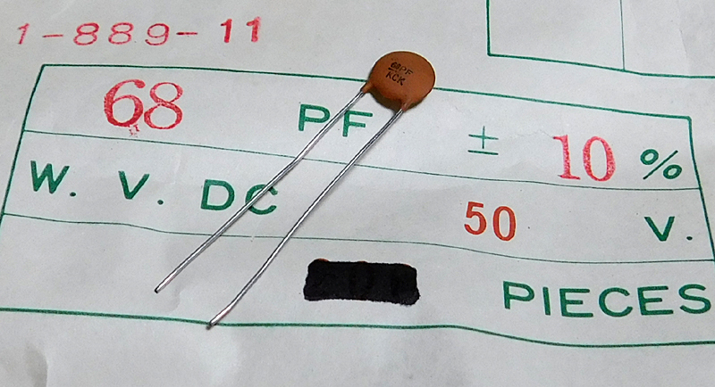 - KCK 1-101889-11 セラミックコンデンサ (50V/68pF±10%/直径:約7mm) [10個組]【管理:KD729】