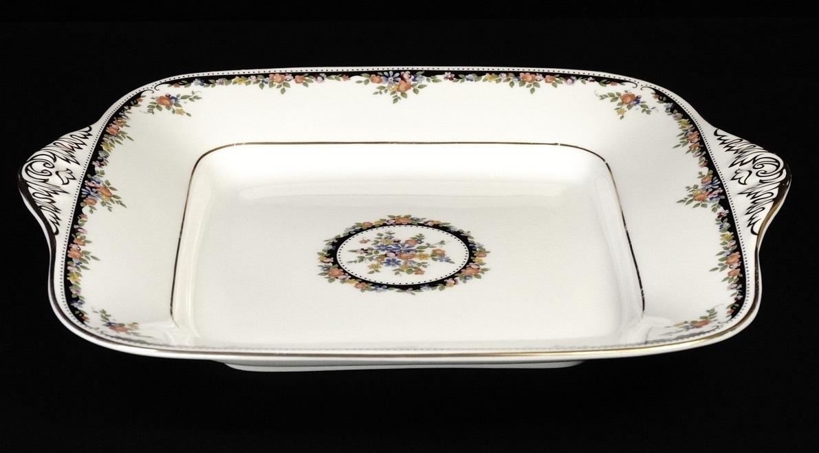 - ビンテージ イギリス製 WEDGWOOD ウェッジウッド スクエアプレート オズボーン 壺ロゴ ボーンチャイナ 幅28㎝ 花柄が白磁に映える KIN