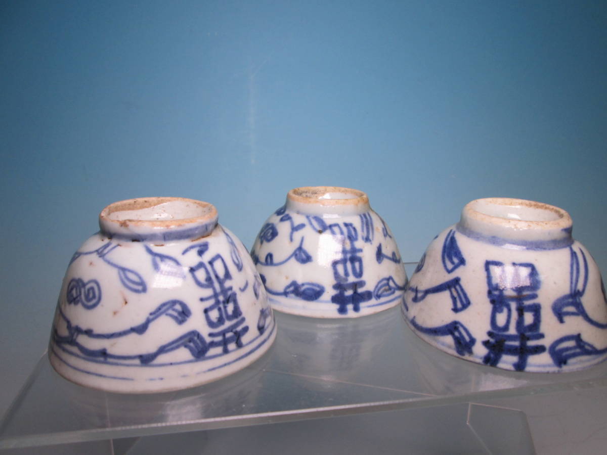 - ☆煎茶道具 中国古玩 染付寿文 煎茶碗 3客