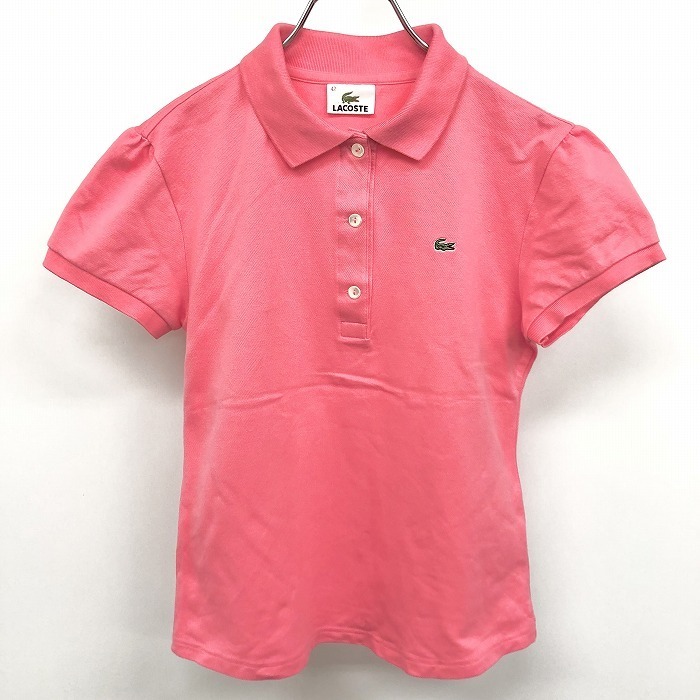 - LACOSTE ラコステ 42 レディース ポロシャツ カットソー スリムフィット 鹿の子 ストレッチ ワニ刺繍 半袖 日本製 綿×ポリウレタン ピンク