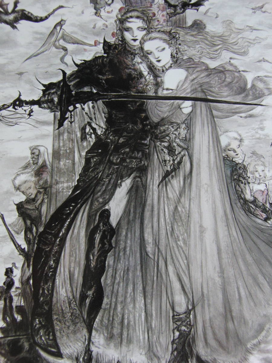- 天野喜孝、【Black Sword】、希少な額装用画集より、新品額装付、状態良好、送料込み