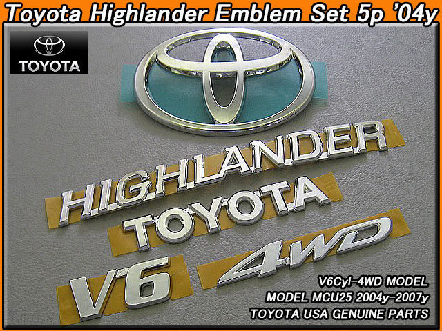 > クルーガー後期MCU25/TOYOTA/トヨタHighlander純正USエンブレムセット-前後5点(3.3L.V6-4WD)04-07y/USDM北米仕様USAハイランダーTマークAWD