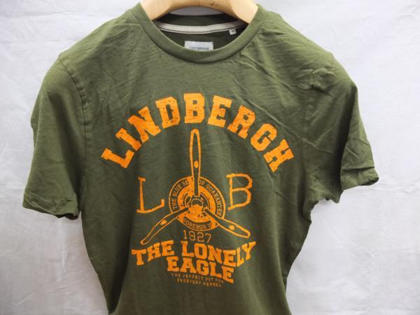 > ★送料割引!半袖Tシャツ ムラ糸天竺 ロゴプリント Lサイズ グリーン系カーキ LINDBERGH★未使用格安!
