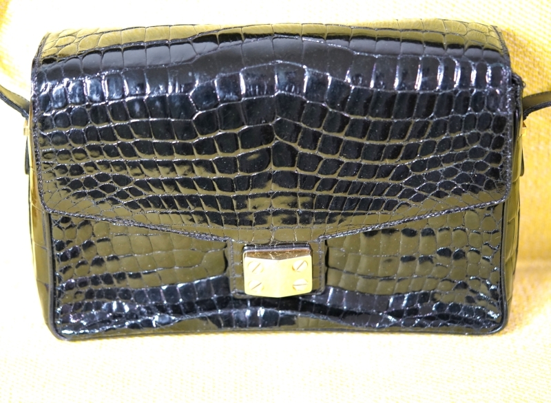 - ITALY 最高級 クロコダイル 2WAY バッグ イタリア製 バッグ ゴールド&シルバー金具 ブラック