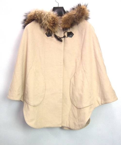 - デビュードフィオレ ケープ コート ベージュ ポンチョ FOXファー