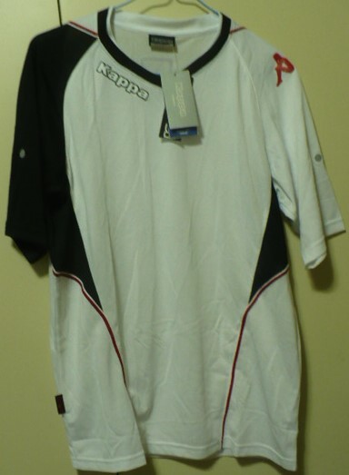 > 紙タグ付き新品未使用品 Kappa(カッパ:フェニックス)製半袖トレーニングシャツ(練習着) L 白×赤×黒 KFMA7B06