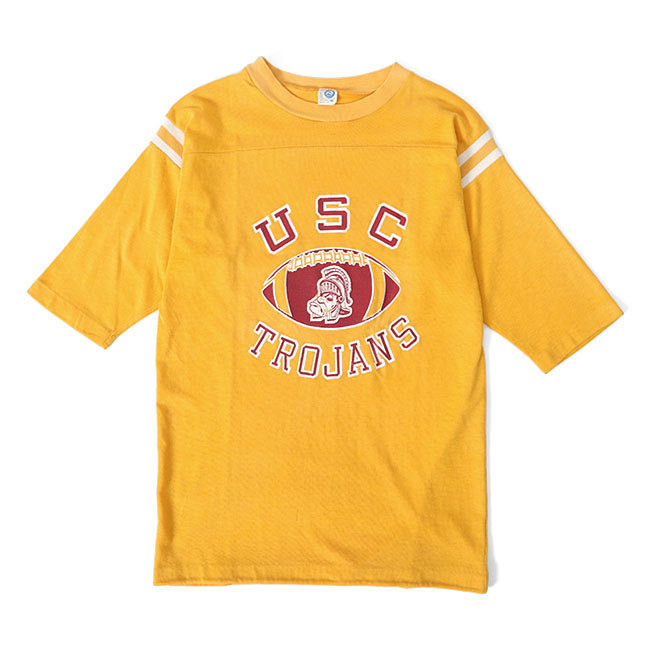 - 古着 70年代 ビンテージ ARTEX アルテックス USC フットボールTシャツ アメリカ製 M 黄 5分丈Tシャツ メンズ