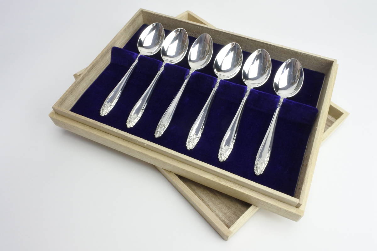 - *昭和時代銀製 スプーン 6本セット 未使用保管品 日本製 桐箱付