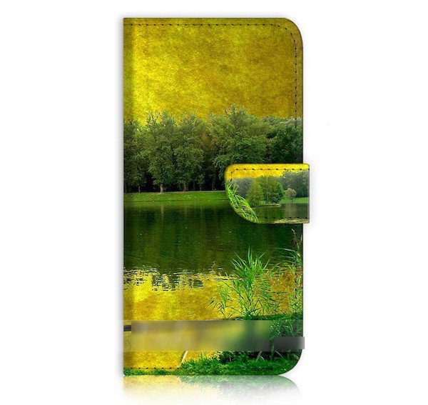 - iPhone7森 湖 木 スマホケース 充電ケーブル フィルム付