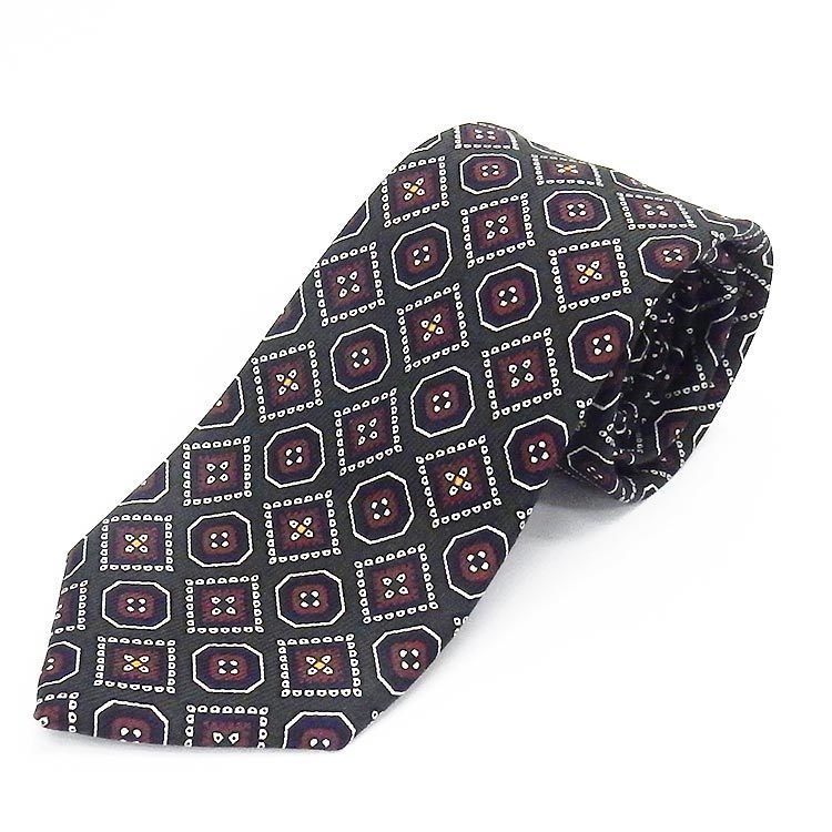 > 英国ADAMLEY(アダムリー)生地使用/京都産▼プリントネクタイ グリーン×ワイン 大柄小紋 シルク100% 日本縫製 KV-ADM02